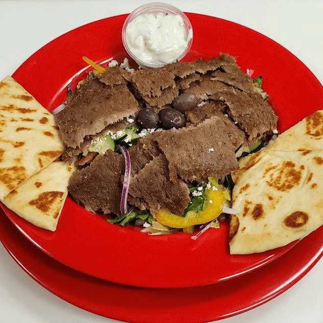 Gyro meat lettuce, tomatoes, onions and tzatziki sauce.