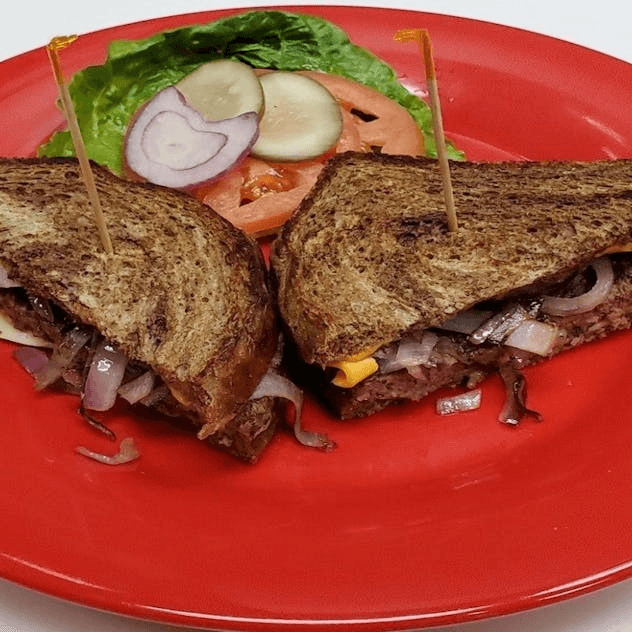 Rye bread with American and Swiss cheese, grilled onions.